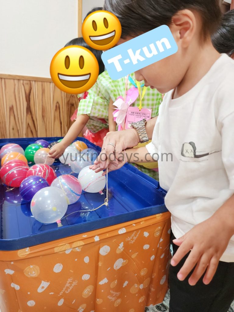 「1人2個お菓子取ってー」って言って袋の中身見えない状態にして手を突っ込んでもらって取ってもらうって事したんです。