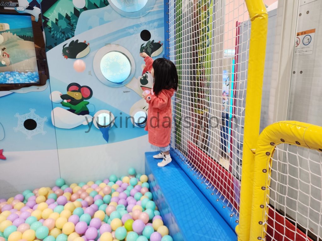 ボールプールでありつつ、壁の穴にボールを投げ入れて上から降ってくる、みたいなゲーム式のボールプールでして、これが無料で楽しめるってもんだから小さい子居る家庭にはありがたいっすよね。