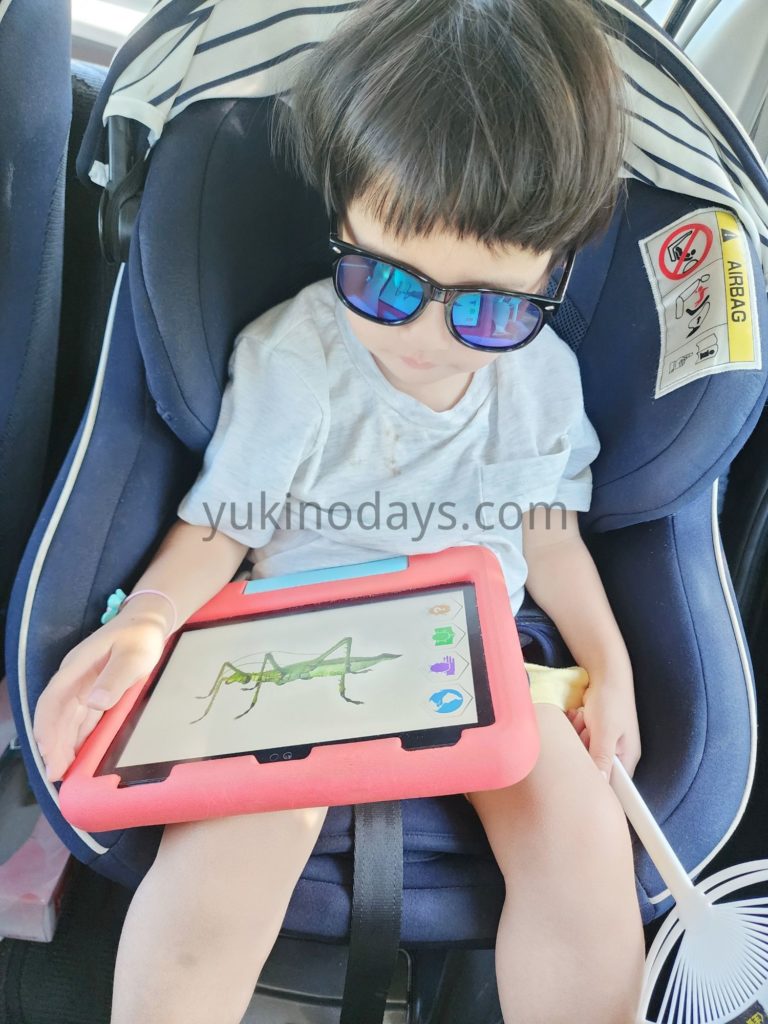 虫に興味あるみたいで、虫の図鑑を見てます。タブレットで。