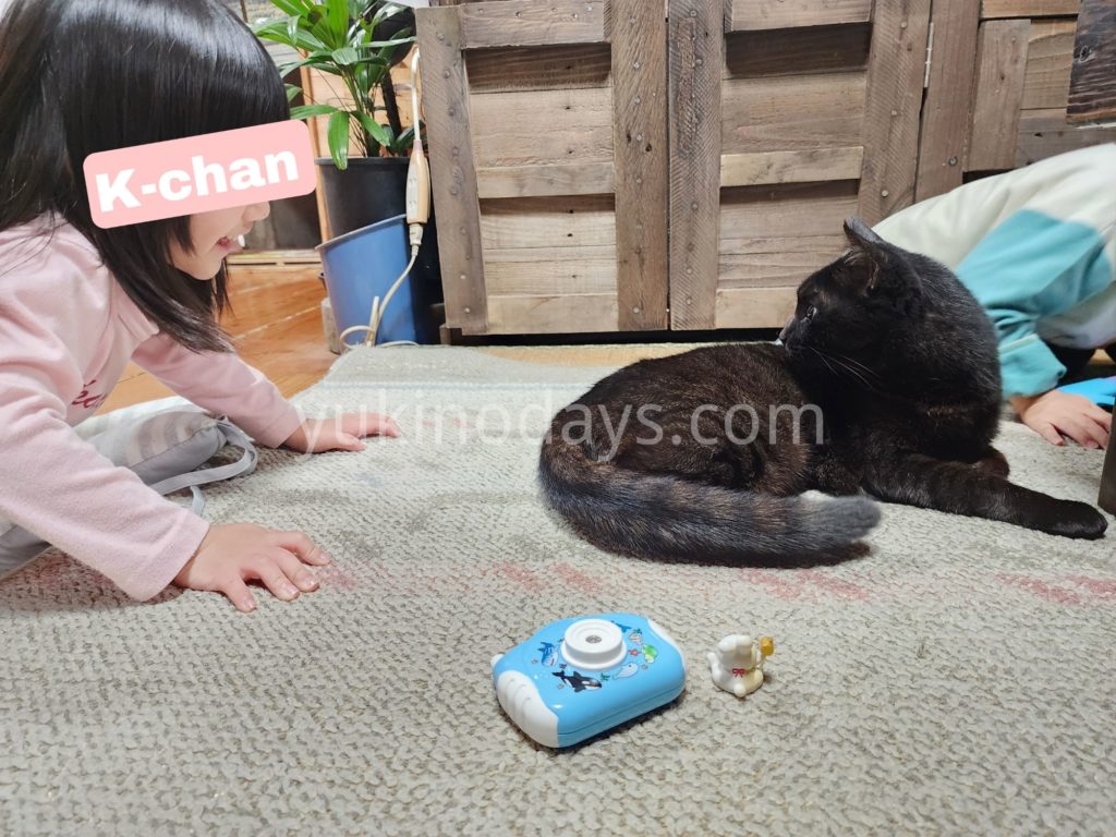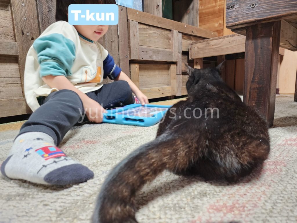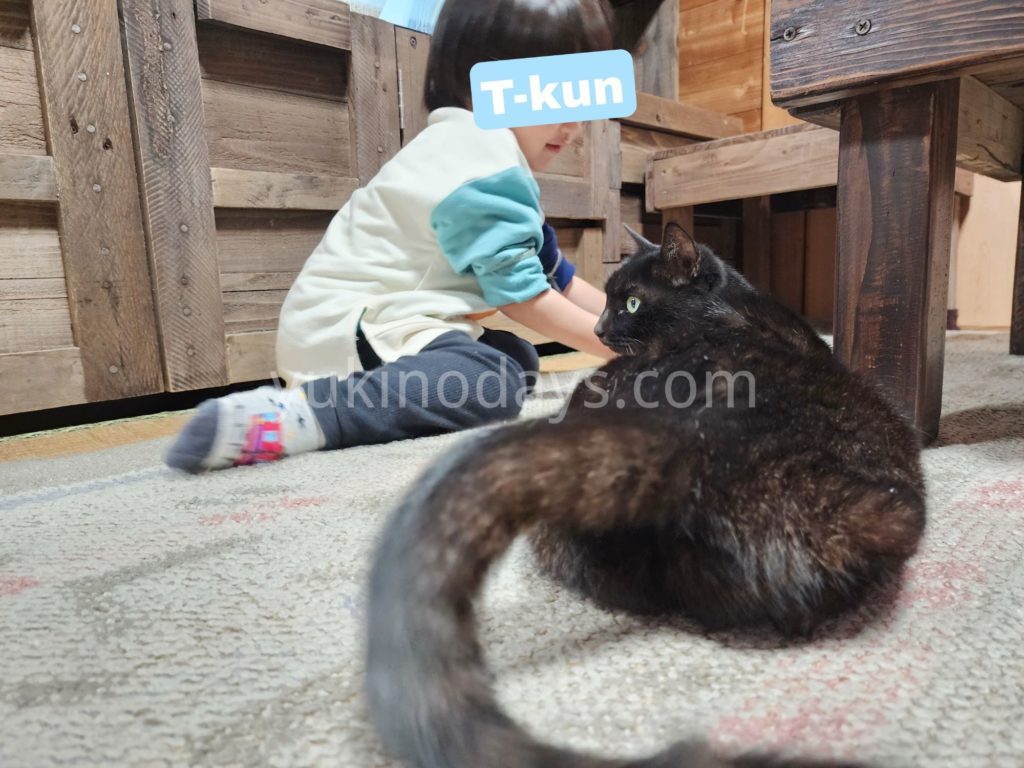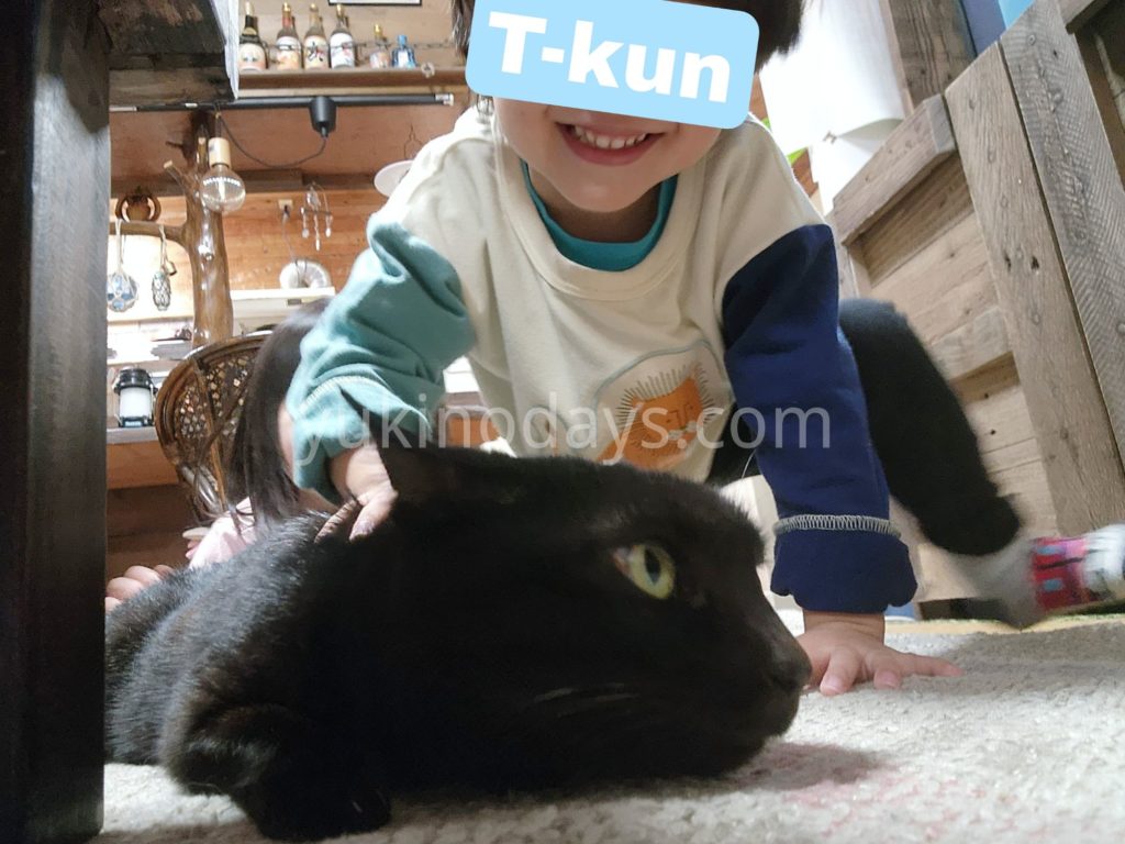 子どもが苦手と聞いていたから、ビックリして引っかいたりしないかと心配でしたが、意外にも面倒見が良い(?)クロさん。