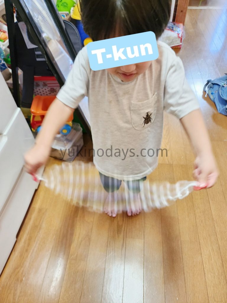 『ダイソー』さんで買ったチェーンをくるくる回して遊んでた。すごいな。(笑)