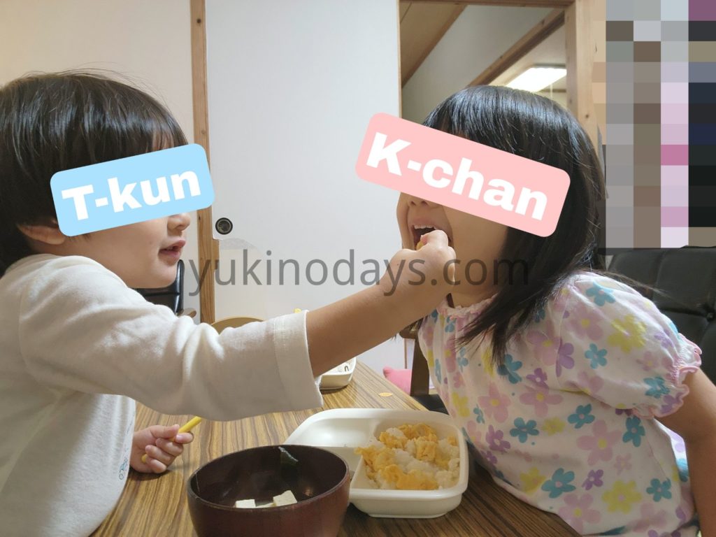 あーんする息子ちゃまも、された娘ちゃんも嬉しそう(*´ω`*)