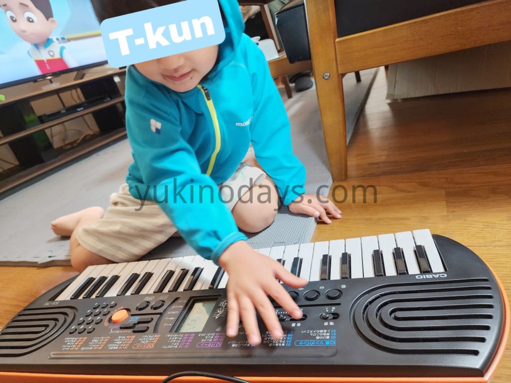 いつかはピアノに触れさせたいなーと思っていたのですが、音を変えられるキーボードも楽しそうだよなーと思っていて。