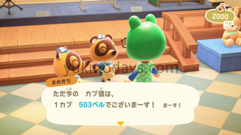そのカブを翌週月曜から土曜の間にタヌキ商店で販売する事が出来る。