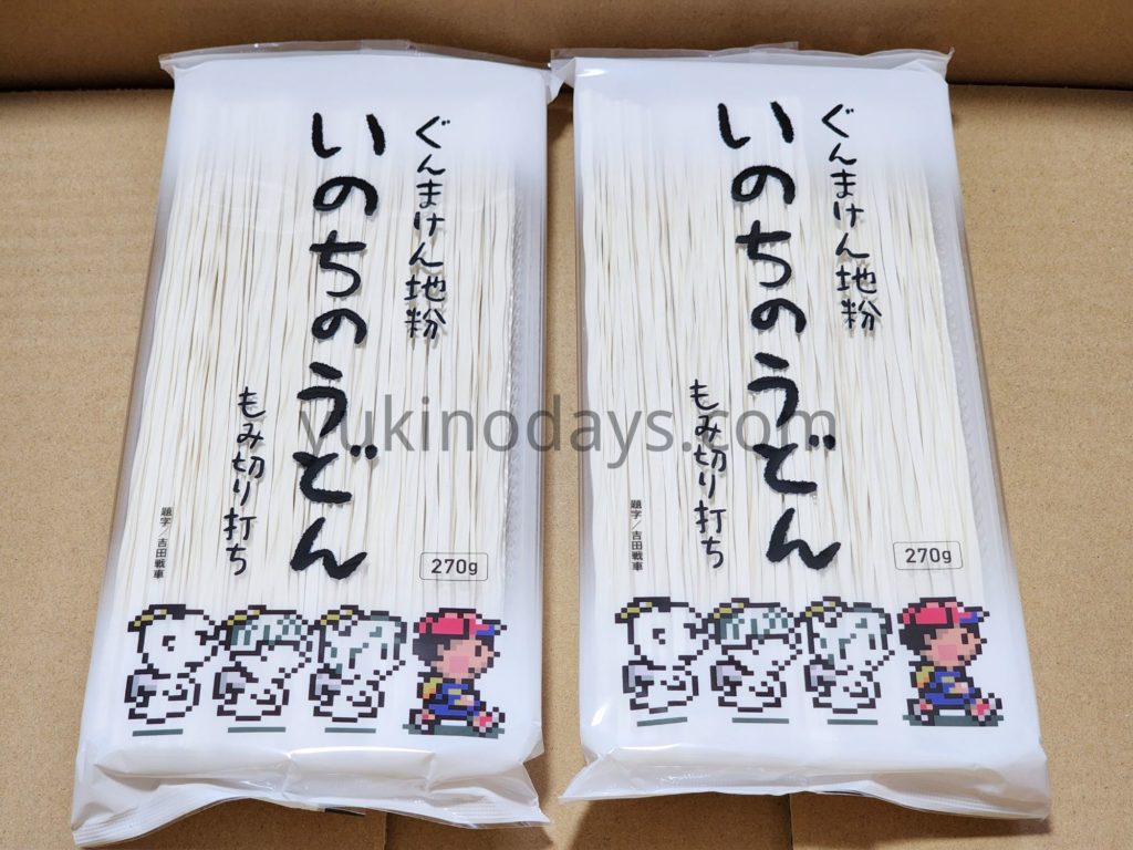 ゲームの世界で【いのちのうどん】を食べると、気絶状態(写真でいうと天使状態の事)からの回復、HPを最大まで回復出来るというありがたいアイテムです!