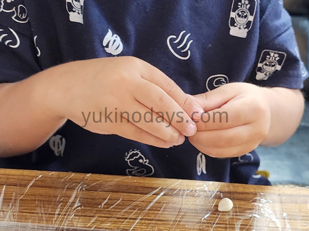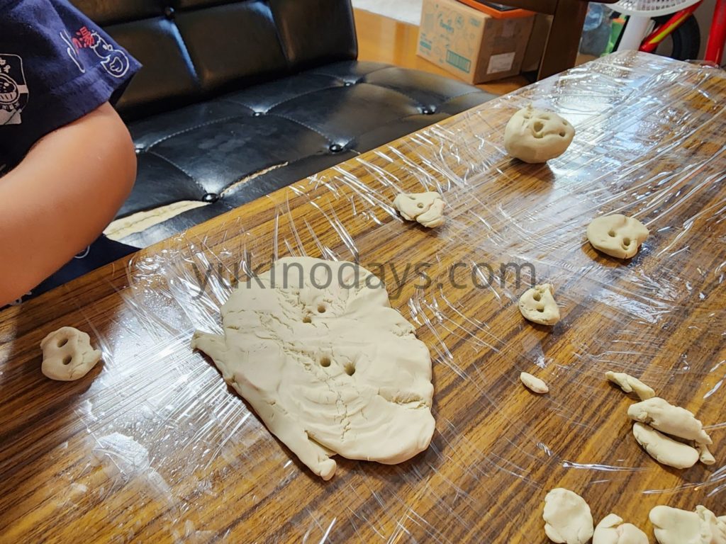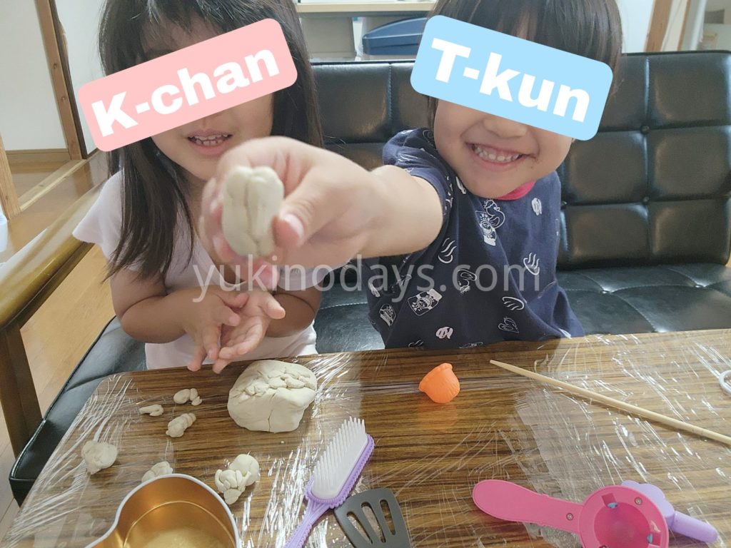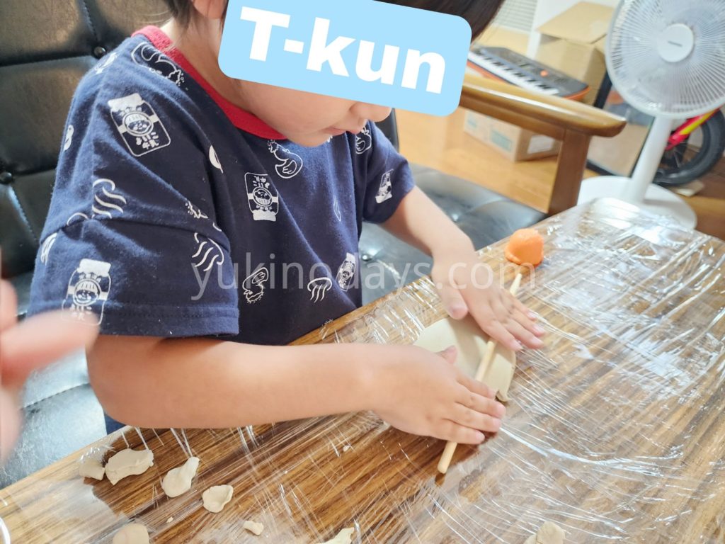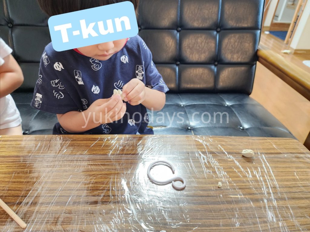 あ、我が家まだ粘土板を買っていないのでテーブルにラップ巻いて遊ばせてます。